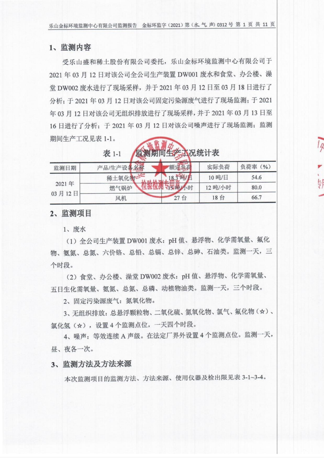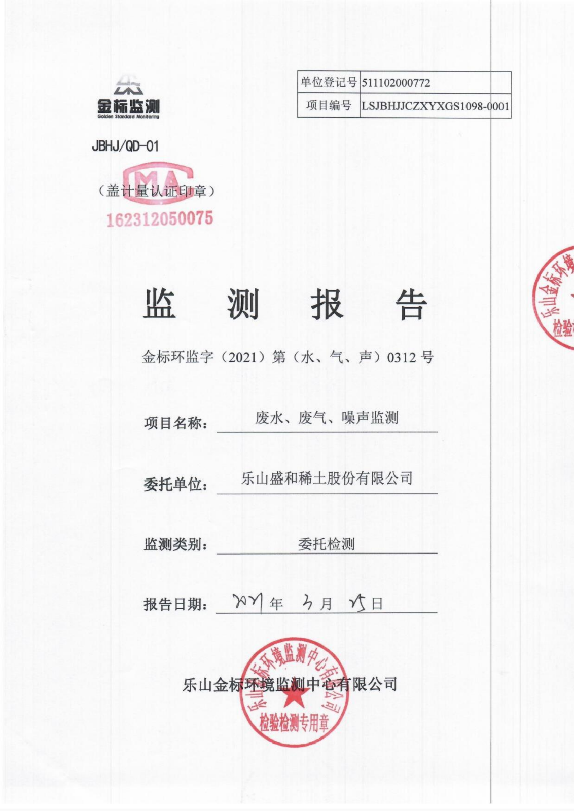 乐山盛和2021年一季度废水、废气、噪声监测报告