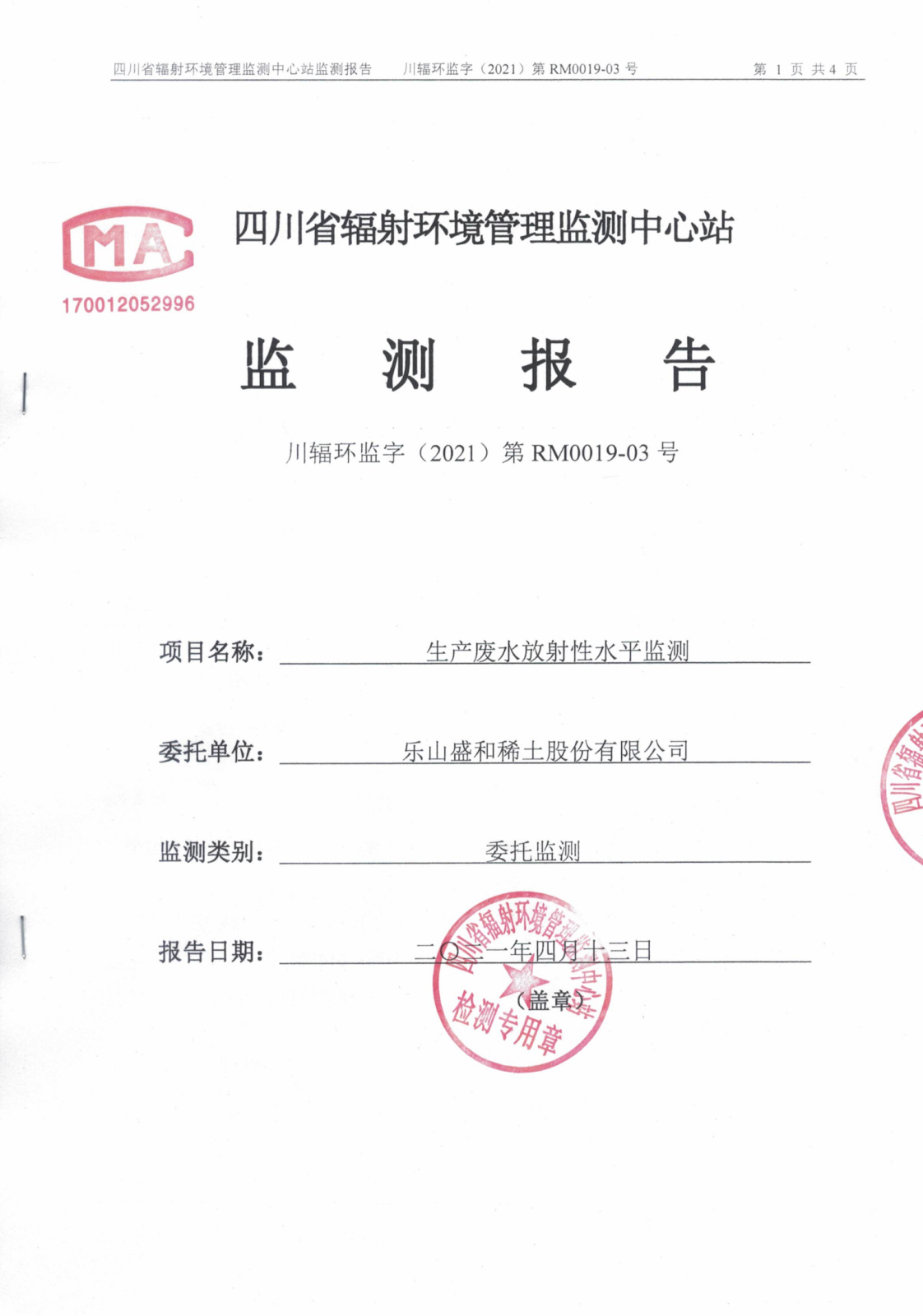 乐山盛和2021年3月生产废水放射性水平监测报告